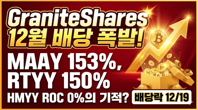 GraniteShares 12월 4주차 배당금 확정: MAAY 153% & IOYY 151% 분석 💰 지급일: 12월 30일(화) 배당락: 12월 26일(금) GraniteShares 12월 4주차 배당금MAAY 153% & IOYY 151% 연말 피날레! GraniteShares YieldBoost ETFs Weekly Distributions 📑 목차 (Contents) 1. GraniteShares 12월 4주차…